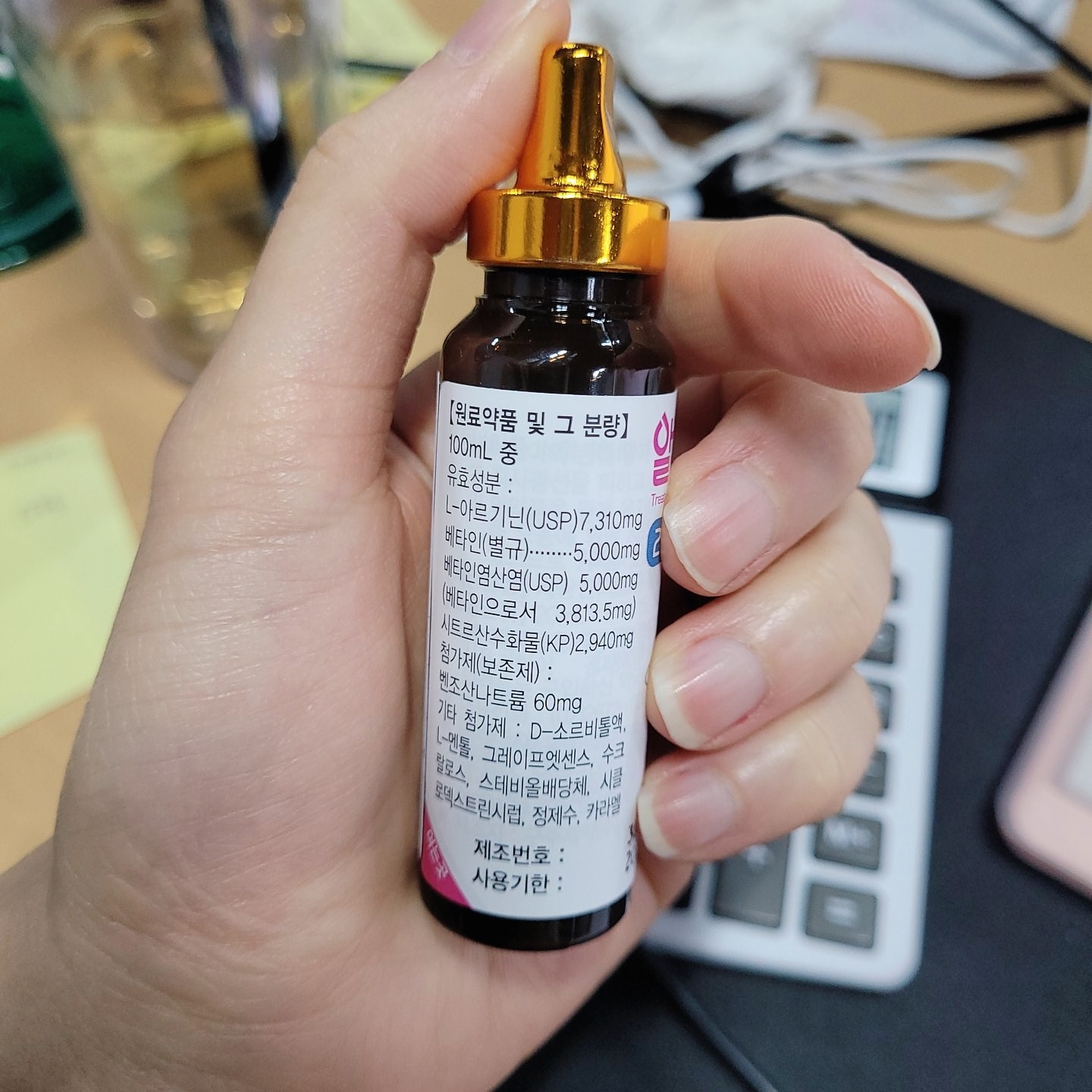 두개를 섞어서 마실때는 맛이 괜찬은데 이거 하나만 마시면 되면 맛이 이상해서 두개를 섞어마시라고 하는건가라는 생각도 들고. 근데 역하진 않아요 달달한 감기약 맛 나요