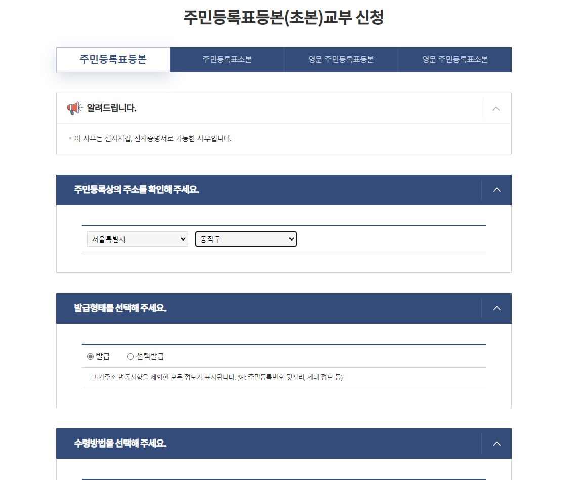 원초본발급 방법은 주민등록 초본 선택사항에