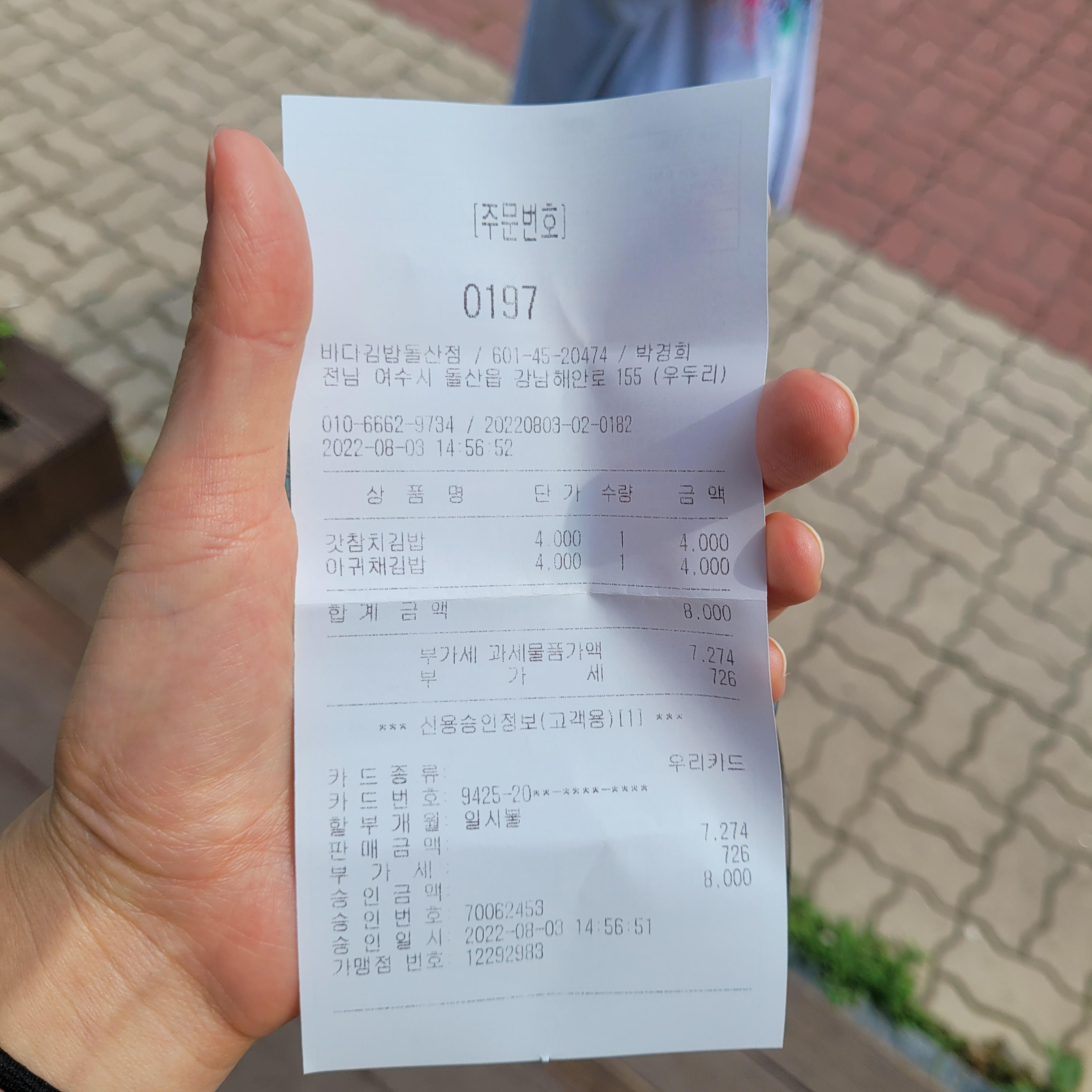 👉 바다김밥 돌산직영점 위치확인하기